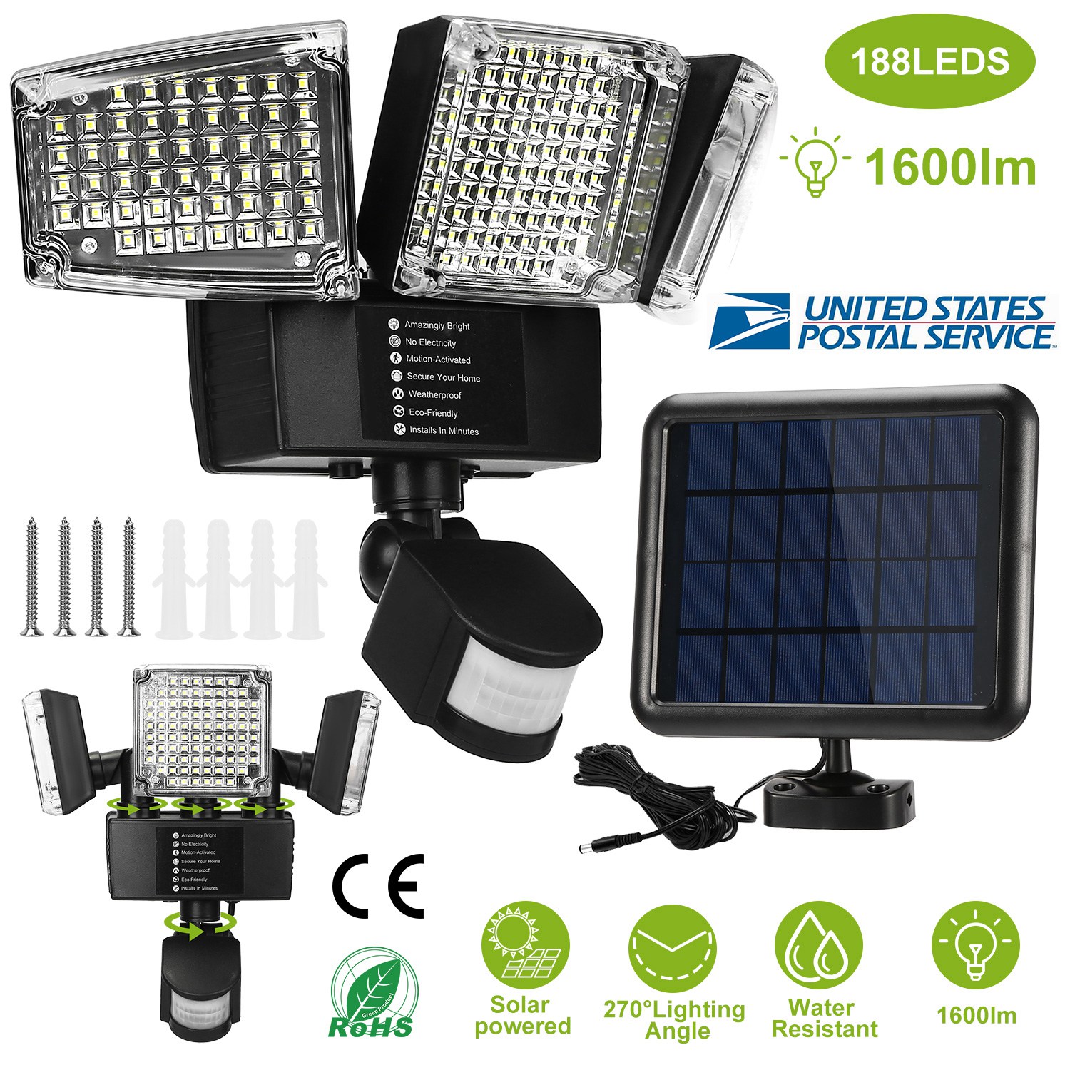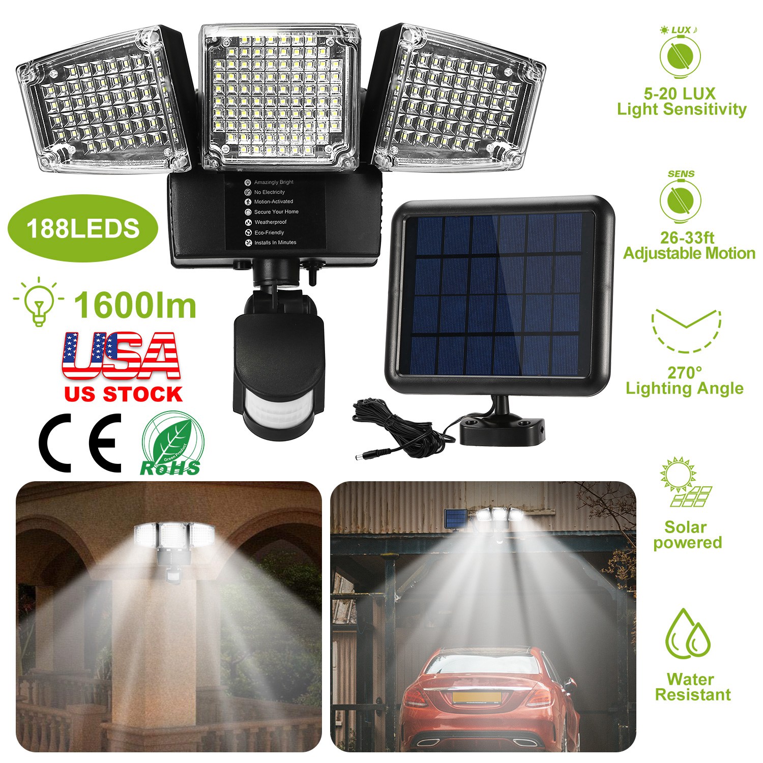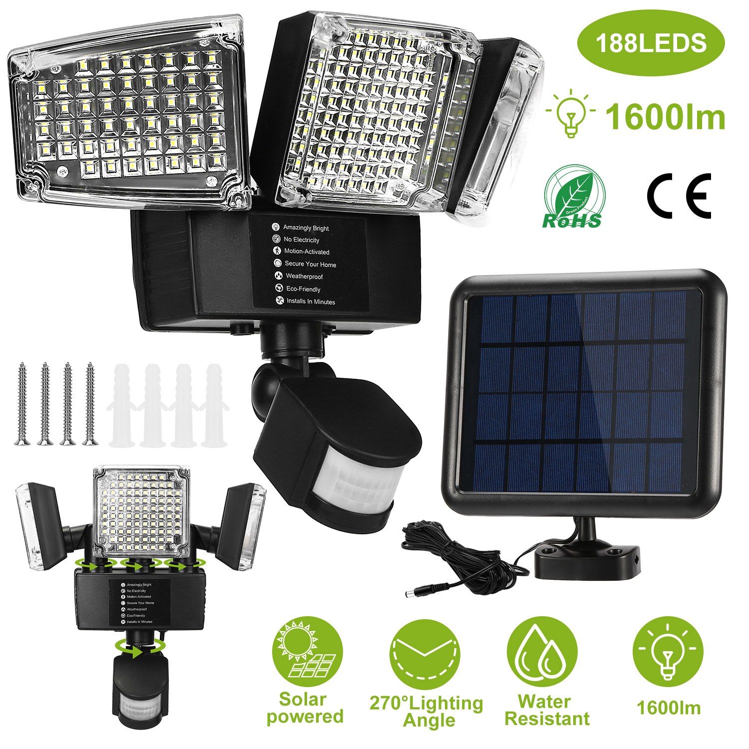 Home > Solar Lights Outdoor 188 LEDs 1600lm Solar Security Lights Motion Sensor Lights 270°Lighting Angle Waterproof Dusk to Dawn Solar Wall Lights 360°Rotat