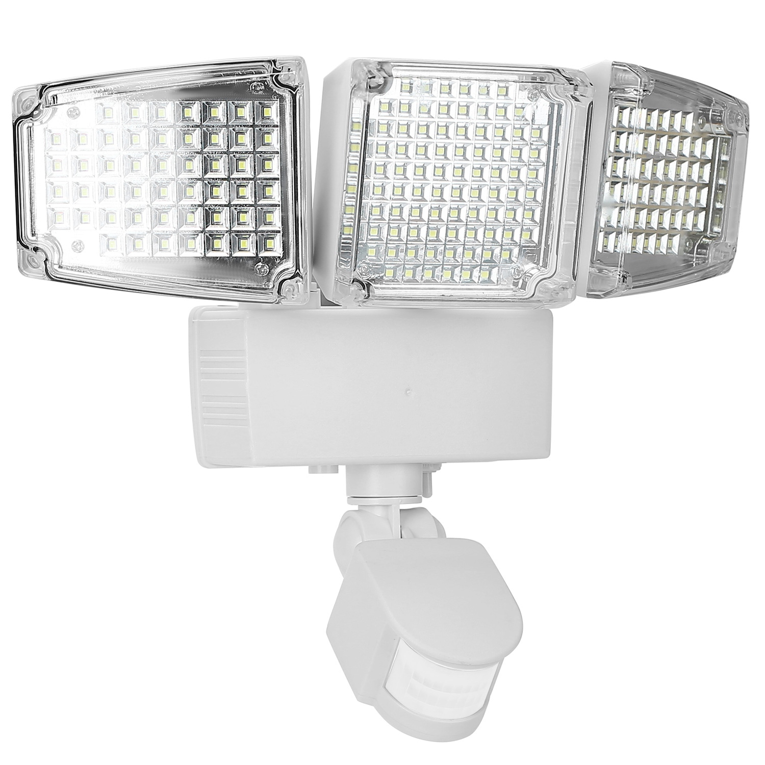 • *【Security & All Weather Resistant】The robust housing and impact-resistant PC lens ensures that this 3 head security light fixture can stand up to the elements and bad weather. IP44 waterproof rating ensures that the 3 head security light fixture won’t give in in rain, sleet or snow weather. It's specifically designed to withstand extreme weather conditions, all weather resistant and provide additional safety and security for your home.